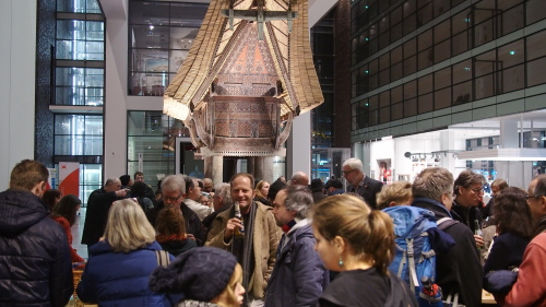 Nach der Veranstaltung konnte das Publikum im Foyer bei Brezeln, Kölsch und Wasser mit den Beteiligten sprechen.