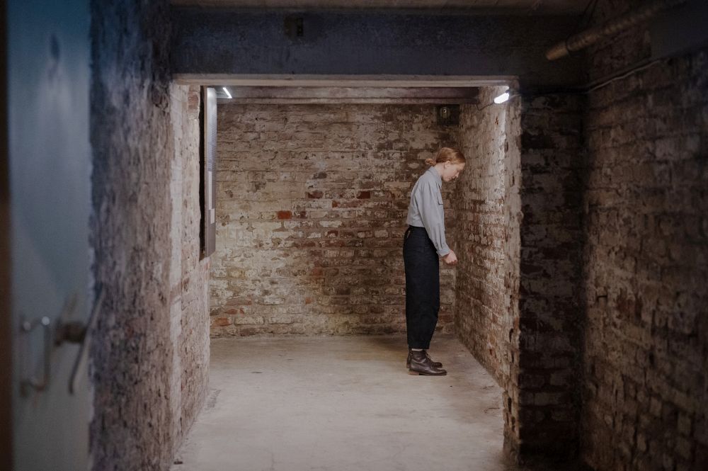 Mit „Arrest“ begegnet Regisseurin, Autorin und Performerin Nicola Schubert dem Grauen des nationalsozialistischen Terrors vor allem körperlich. Wohl wird im Zuge des rund einstündigen Audiowalks gesprochen, jedoch im Rahmen eines komplex inszenierten Hörstücks, bei dem verschiedene Sprecher:innen den Protagonist:innen via Funkkopfhörern ihre Stimmen und Gefühle leihen. Der Fokus liegt auf Schuberts Gestik. Mitunter auf minimalistische Gesichtsbewegungen reduziert, erschafft die Schauspielerin in der früheren Nazi-Zentrale Gemütszustände, die ein Spektrum von Leid, Angst, Wut, Hoffnung der gequälten Insass:innen, aber auch die Kaltschnäuzigkeit seitens der Peiniger:innen abdecken. Die auf realen Biografien basierenden Geschehnisse offenbaren das Schicksal von politisch verfolgten Frauen, die in Köln und Dortmund auf Gestapo-Mitarbeiter:innen treffen. Schubert dringt dabei mit Vehemenz in die Seelenlandschaften der Figuren und schaut aus deren Pupillen auf Opfer wie Täter:innen.