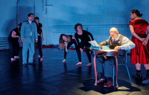 In oft dichterischer Sprache klopft Autor Jürgen Himmelsbach die in den Briefen natürlich nicht umfänglich berichtete Situation vor allem psychologisch bis in die Winkel ab, indem er Löber mit seiner eigenen Ambivalenz und mit naheliegenden Vorwürfen teilweise unbekannter Herkunft konfrontiert, bis hin zu einer hochemotionalen Rechtfertigungsszene, einem Dialog zwischen heute und gestern, der den Bogen auch in die griechisch-deutsche Gegenwart schlägt. „Ich tue Gutes nur damit“, heißt es einmal, als er auf seine Rangabzeichen angesprochen wird. Barbara Fernández ist leider wenig als die treue Krankenschwester zu sehen, die das griechische Gegenstück zu ihm bildet. Eher spielen Fernández und Klaus Prangenberg zynische Spiegel-Hochhalter und repräsentieren die einordnende Welt, in die Löber wohl wirklich nicht mehr passte. Junge Performer in Schwarz begleiten das Stück vorwiegend als geisterhafte Repräsentation der Weltverhältnisse.