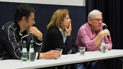 KHM-Professorin und Arte-Redakteurin Sabine Rollberg führte das Publikumsgespräch mit Bredenbrock und Pagonakis. Prominente Musiker vor die Kamera zu holen, beschrieb Bredenbrock als schwieriger denn je: „Inzwischen ist natürlich auch die Reputation des Fernsehens abgesunken, die auch in Deutschland schwer gelitten hat, in den letzten 10 bis 20 Jahren. In den USA ist es erledigt, es hat die Reputation eines Nullmediums.“ Was das zweisprachige Arte sei, wisse und verstehe dort erst recht niemand. So ein europäisches Konzept sei dort „völlig undenkbar“.