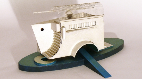 Wasa Marjanov, der 1947 in Pancevo in Jugoslawien geboren wurde und 1963 nach Deutschland übergesiedelt ist, hat an der Kunstakademie Düsseldorf das Studium Integration und Bildende Kunst abgeschlossen – das Reflektieren des Öffentlichen Raumes und die Auseinandersetzung mit Architektur waren da schon angelegt. Bekannt wurde er Mitte der 1980er Jahre im Umfeld der sogenannten „Modellbauer“ mit Schütte, Mucha und Klingelhöller. Eine Zeitlang waren diese Künstler führend im Kunstgeschehen, wobei Marjanov aber eine Position am Rande einnahm: Ein bisschen mehr als die anderen Künstler interessierte ihn doch der Bezug zu „realer“ Architektur, indes verließ er schon da als einziger den kleinen Maßstab nicht. Konsequenterweise wurde seine Kunst später der dekonstruktivistischen Architektur zugerechnet. So nahm er im Jahr 2000 gemeinsam mit Architekten wie Coop Himmelblau und Zaha Hadid an der Ausstellung „Metaformen“ in der Kunsthalle Düsseldorf teil. Aber die Objekte von Marjanov unterlaufen jeden Anspruch auf Realisation; auf der baulichen Seite fordern sie gerade nichts heraus. Vielmehr: „Ihre besonderen Qualitäten bestehen gerade darin, den Realitätssinn zu überfordern, jede verengende Definition ins Weite zu entlassen, damit aber eine Wahrnehmung zu ermöglichen, die das Gesehene nicht für wahr nimmt, sondern als Denkmodelle zwischen realen und geistigen Orten erfährt“, wie Bernd Finkeldey vor einigen Jahren geschrieben hat (Kat. Budapest, Belgrad, Sofia 2003).