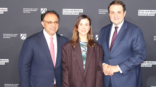 Sonntag, 18. Februar: Eigentlich war alles wie gewohnt, denn der NRW-Empfang, zu dem die Landesregierung Nordrhein-Westfalens und die Film- und Medienstiftung NRW im Rahmen der diesjährigen Berlinale eingeladen hatten, fand bereits zum 21. Mal statt und hat damit eine feste Tradition beim größten Filmfestival in Deutschland. Für Walid Nakschbandi, der in diesem Jahr die Geschäftsführung der Film- und Medienstiftung NRW von seiner Vorgängerin Petra Müller übernommen hatte, war es indes eine Premiere. Gemeinsam mit dem Minister für Bundes- und Europaangelegenheiten, Internationales sowie Medien und Chef der Staatskanzlei in NRW, Nathanael Liminski, begrüßte Nakschbandi vor der Fotowand in der Vertretung des Landes Nordrhein-Westfalen beim Bund in Berlin etliche Filmteams und Prominente, die hier im Anschluss bis in die Morgenstunden feierten. Mehr als 1000 Gäste waren insgesamt auf dem Empfang erschienen. Der neue Geschäftsführer brach mit Leichtigkeit das Eis, und konnte mit seiner offenen und freundlichen Art die Herzen aller Anwesenden schnell gewinnen. Insgesamt elf Filme, die mit Unterstützung der Film- und Medienstiftung NRW realisiert worden waren, sind in diesem Jahr in den verschiedenen Sektionen der Berlinale zu sehen. Drei davon haben es sogar in den offiziellen Wettbewerb geschafft und konkurrieren nun dort gemeinsam mit anderen internationalen Produktionen um den Goldenen Bären. Chancen auf einen Gewinn kann sich beispielsweise Andreas Dresen für seinen neuen Film „In Liebe, Eure Hilde“ erhoffen, der am Abend zuvor seine umjubelte Weltpremiere gefeiert hatte. Produziert wurde der Film über die NS-Widerstandsgruppe „Rote Kapelle“ von der Kölner Pandora-Film.