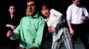 Die Bühne sieht aus wie eine Turnhalle beim Abschlussball. Zwei Seiten sind mit silbernen Vorhängen geschmückt, links stehen ein Flügel und ein langer Tisch mit Instrumenten und Notebooks, hinten rechts eine lange Bank. Auch die elegante Kleidung der eintretenden Schauspieler, Musiker und Sänger könnte auf ein Fest hinweisen.