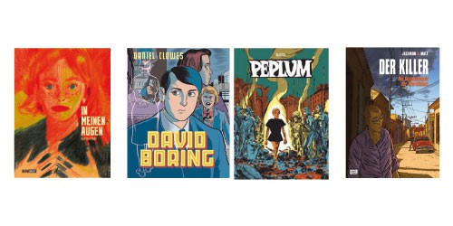 Im Frühling darf man sich auch auf die Neuauflage von Clowes' nicht weniger verwirrender Story „Ein samtener Handschuh in eisernen Fesseln“ freuen (Reprodukt). Der Franzose Blutch demonstriert mit „Peplum“ ein weiteres Mal seine Vielseitigkeit. „Peplum“ ist eine Odyssee eines jungen Mannes im Römischen Reich, die es in Bezug auf skurrile Figuren, surreale Mystik und drastische Gewaltdarstellung mit Fellinis „Satyricon“ oder Pasolinis „Medea“ durchaus aufnehmen kann. Gezeichnet ist die archaische Reise um Liebe und Besessenheit in groben Schwarzweiß-Bildern. Die letzte Seite bringt den Wandel des Helden noch mal schockierend auf den Punkt (avant-verlag).