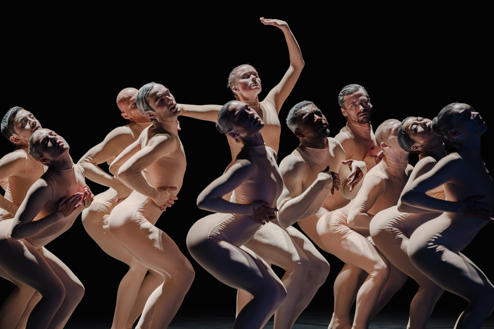 Auch gut 15 Jahre nach seiner Uraufführung mutet Sharon Eyals „Corps de Walk“ immer noch futuristisch an: Das sich über die Tanzfläche bewegende Ensemble wirkt außerirdisch und roboterhaft. Durch hautenge beige Bodysuits, identische Frisuren und weiße Kontaktlinsen scheint die Individualität der Tänzer:innen aufgehoben zu sein – sie agieren und performen als Kollektiv. Auch inhaltlich behandelt das Stück die Anziehungskraft der Masse, mal in Form von heidnischen Fruchtbarkeitsriten, mal in Form von geometrischen Marschformationen.