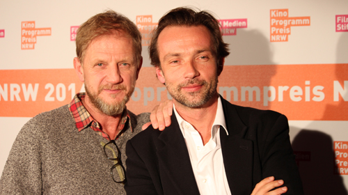 Traditionell ist die Kinoprogrammpreisverleihung aber keine dröge Urkundenvergabezeremonie, sondern auch eine Vorschau auf kommende Kinoattraktionen, bei denen Regisseure und Schauspieler ihre neuen Werke vorstellen und gleichzeitig für die Kinobetreiber als Paten fungieren. In diesem Jahr war dafür beispielsweise das Team von „Radio Heimat“ zu Gast. Regisseur Matthias Kutschmann erläuterte im Gespräch mit dem vom WDR bekannten Moderator Ingo Schmoll, dass es durchaus schwierig war, für seinen Film die Ruhrgebietszeit der 60er und 80er Jahre zu rekonstruieren: „Viele der Originallocations sind schon größtenteils abgebaut, da musste viel gestrichen und nachgebaut werden.“ Gleichwohl fiel es den Darstellern leicht, in diese längst vergangenen Tage wieder einzutauchen. Stephan Kampwirth erzählte: „Das, was da im Film passiert, habe ich damals selbst erlebt! Das alles war erschreckend nah dran an meiner eigenen Jugend.“ Auch für seine Filmpartnerin Sandra Borgmann war der Dreh von „Radio Heimat“ etwas ganz Besonderes: „Das war für mich in der Tat ein sehr heimatlicher Film, weil er mich an Orte zurückführte, die ich mit meiner eigenen Kindheit verbinde.“ Ähnliche Erfahrungen machte auch Kultregisseur Sönke Wortmann, der Mitte nächsten Jahres eine weitere Frank-Goosen-Verfilmung in die Kinos bringen wird. Am Abend zeigte er erste Ausschnitte aus „Sommerfest“, der sich derzeit im Rohschnitt befindet. „Das wird vielleicht mein persönlichster Film seit „Kleine Haie“, denn es ist ein richtiger Heimatfilm geworden, und ich bin ja auch ein Kind des Ruhrgebiets“, kommentierte der Regisseur.