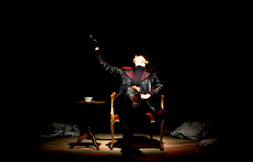 Düsterer Ruß, eine von Leichensäcken überhäufte Bühne und dann der Auftritt der in schwarzem Leder gekleideten Christina Vayhinger als Terminator-artige Tötungsmaschine. Die Zutaten für diesen Theaterabend in der Orangerie sind schnell aufgezählt. Der Anspruch der Inszenierung wird dadurch allerdings nicht geschmälert: Vayhinger begibt sich auf eine Reise durch 2000 Jahre Kriegsgeschichte. Schlaglichtartig werden all die vermeintlich großen Kriegsherren (und -frauen) von Alexander dem Großen bis George Bush nach ihren Motiven und Ansichten über den Krieg befragt.