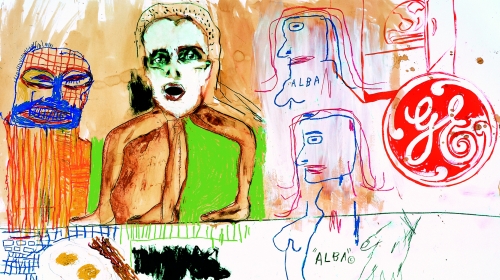 Die Zusammenarbeit blieb nicht ohne Spuren im Werk der anderen. Ganz besonders deutlich ist das in den 23 Gemeinschaftswerken Warhols und Basquiats zu sehen. Nach mehr als 20 Jahren beginnt Warhol wieder zu malen und Basquiat, den Schrift auf seinen Bildern immer schon begleitete, begann mit dem Siebdruck, offensichtlich inspiriert von Warhols Einfluss. Und so kann man glücklich auf Spurensuche gehen – beispielsweise bei „Alba‘s Breakfast“ von 1984 –, wer von den dreien wohl welche malerischen Elemente in den „Collaborations“ beigesteuert hat.