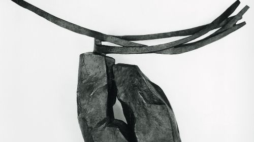 Wilhelm Loth ist heute im Rheinland wahrscheinlich nicht sehr bekannt. Aber er hat hier 1965 den Großen Kunstpreis erhalten und im Jahr darauf das Relief „Lippenwand“ im Josef-Haubrich-Hof gestaltet. Seine Heimat ist jedoch Südwestdeutschland. Loth wurde 1920 in Darmstadt geboren. Er hat nach dem Krieg in dieser Stadt studiert und selbst unterrichtet, bevor er einen Ruf als Leiter und dann Professor einer Bildhauer-Kasse an der Kunstakademie in Karlsruhe erhalten hat. Zu seinen bedeutendsten Schülern gehören Franz Bernhard und Robert Schad. Beide gehen wie ihr akademischer Lehrer von der menschlichen Gestalt aus und verknappen diese: Franz Bernhard deutet den versehrten und verletzten Leib als Fragment aus Holz mit Eisenbeschlägen nur noch zeichenhaft an, und der etwas jüngere Robert Schad entwickelt mit hoch aufragenden, dabei abknickenden Eisenstäben eine tänzerische Bewegtheit. Etwas von Beidem klingt ebenfalls schon in Loths eigenem Werk an.