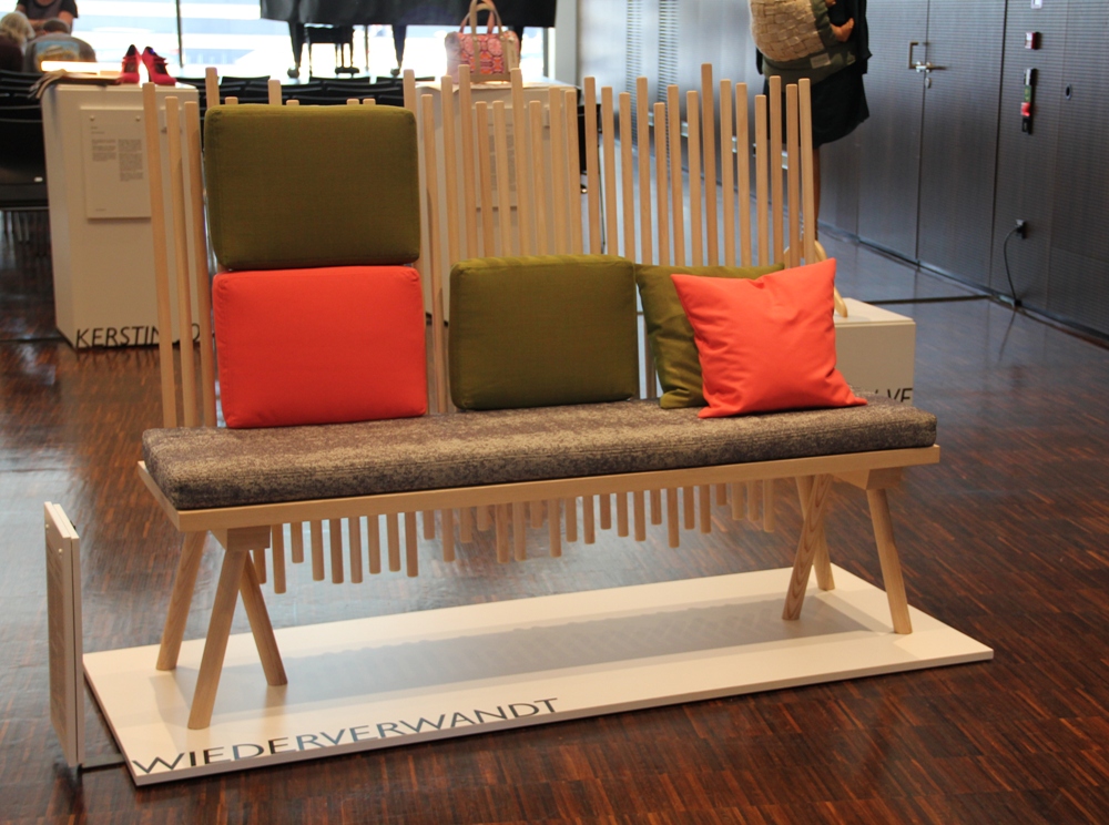 Eine schlichte Bank kann Energiekosten senken. Wie das geht? Durch die offenen Streben an der Rückseite ist eine gute Wärmezirkulation möglich. Steht die Bank beispielsweise vor einer Heizung, kann die gesamte Wärme genutzt werden. Neben Recycling ist Upcycling ein großes Thema: Bei der Garderobe von „Groegl Upcycling“ wurden alte Materialien zu etwas gänzlich Neuem transformiert.