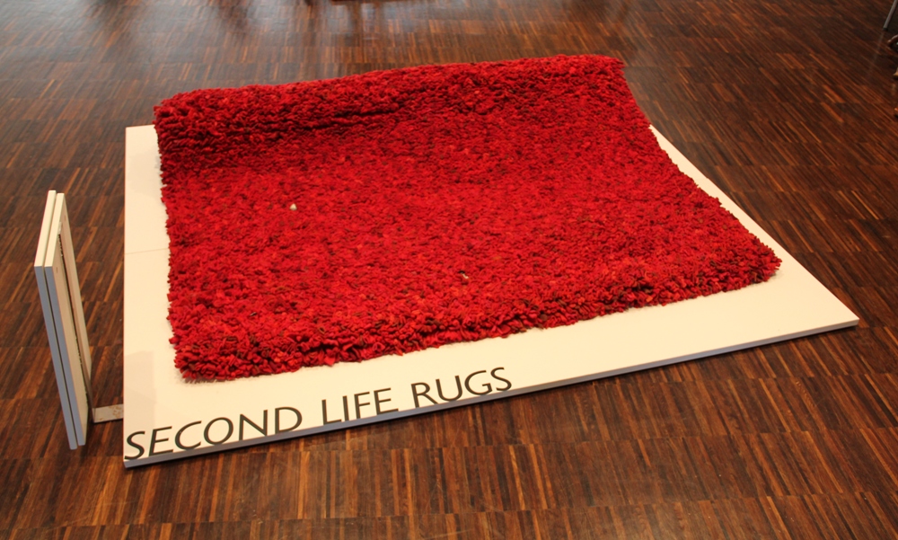 Der knallrote „Upcycling Teppich“ von Ute Ketel ist ein handgeknüpfter, abgepasster Hochflorteppich aus Lana Cotta und ein schönes Beispiel für recycelte Einrichtungsgegenstände. Alte Materialien wurden wiederverwertet, wodurch ihnen in Form eines Teppichs zu einer neuen Bestimmung verholfen wurde.