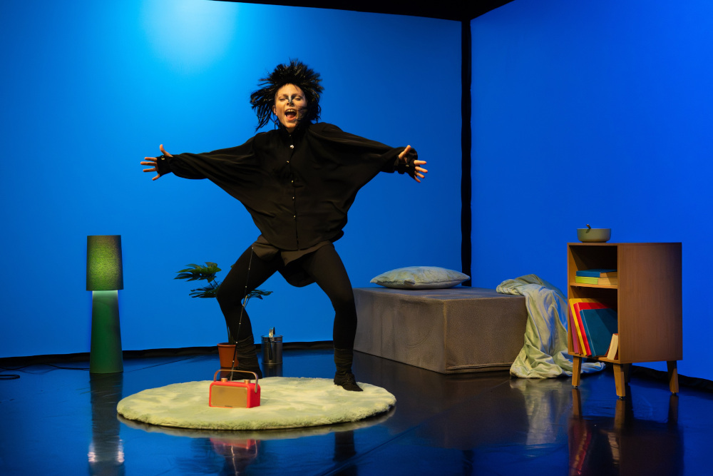 Bestehen bleibt zudem die durchgehende Veränderung des Schauspiels. Die Metamorphose des bodenständigen Menschen zum Rabenvogel gelingt Scherf hervorragend: Die Flügelspanne der Gemütszustände jenes auch in der Literatur legendären Wesens reicht bei ihr von hochkonzentrierter Beobachtung, temporären Rückzügen über entschiedene Aktion bis hin zu völlig losgelöster Verspieltheit. Synchron mit den digitalen Effekten schreitet, springt, ruht, liest, fliegt die Darstellerin durch eine Geschichte, die gänzlich ohne Gesprochenes erklingt, aber mit einem universellen Wörterbuch voller Lachen, Neugier, erheiternden Unverschämtheiten, ein wenig Melancholie und grenzenloser Unbekümmertheit ausgestattet ist. So fordert Scherf junge wie ältere Zuschauer:innen zu einem Krähentanz der Lebensfreude auf.