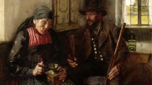 Wilhelm Leibl, Bauernjägers Einkehr, 1893, Öl auf Leinwand, 73 x 86 cm (Ausschnitt)