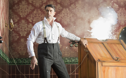 Man wähnt sich im Film „Das Leben der Anderen“; Ulrich Mühe, Spion der Stasi alias Bartolo, Intrigant am gräflichen Hofe, klettert mit Kopfhörern, Kamera und einer Peilantenne auf dem Dachboden herum und spionierte Susanna und Figaro nach. Denn Graf Almaviva möchte am überkommenen Machtsystem festhalten, der pfiffige Figaro aber will gerne alte Zöpfe abschneiden und tapeziert erst einmal sein heruntergekommenes Zimmer im Schloss. Mozarts Meisteroper hatte damals nicht umsonst Mühe, überhaupt aufgeführt werden zu dürfen. Aber – nicht wie oft üblich – verzichtet hier der Regisseur auf den politisch mahnenden Zeigefinger, sondern schenkt dem ausverkauften Haus gute drei Stunden wahres Opernglück.