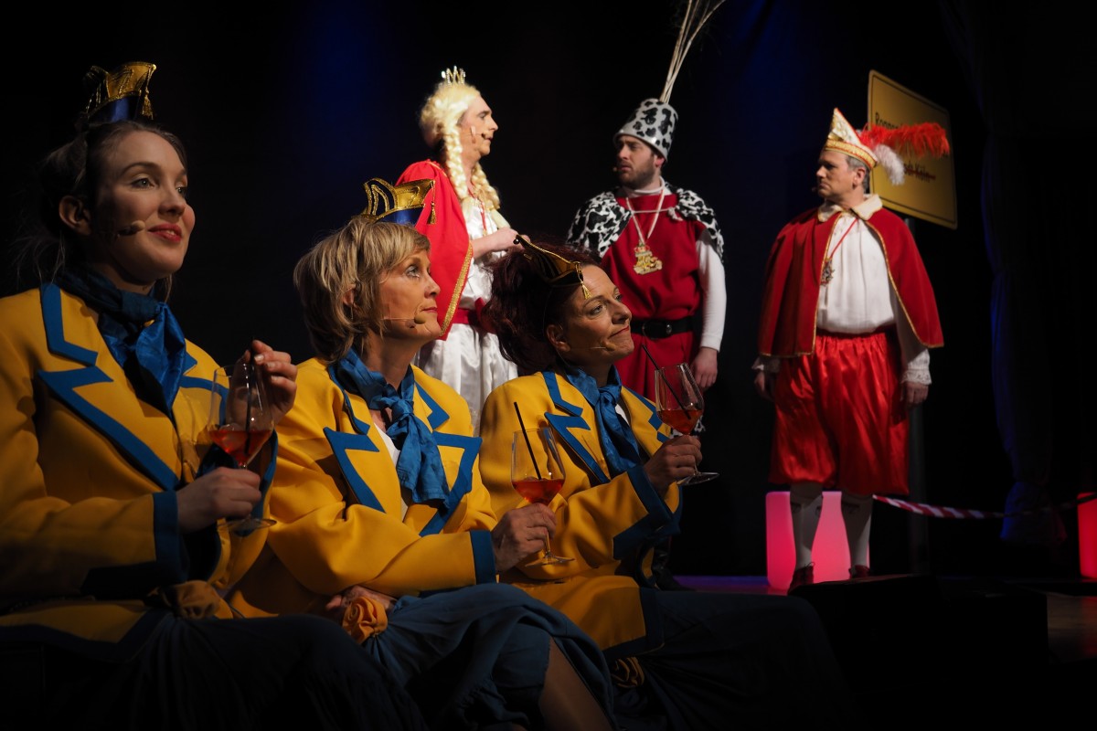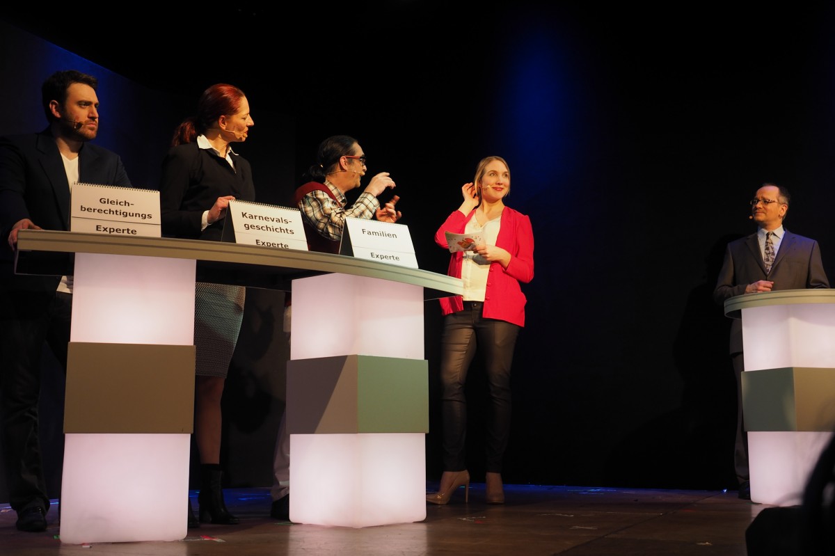 Präsident und Posterboy Christoph Stubbe führt mit frecher, thematischer Moderation durch ein musikalisch umrahmtes Sketch-Programm, an dem er auch selber schauspielerisch teilnimmt. Lustvoll-bissig arbeitet es sich mit politischem Kabarett, Typenkomik, Satire, Märchenbearbeitung und allerlei hintersinniger Albernheit an den letzten 12 Monaten ab, wo nicht an der heutigen Zeit allgemein. Wer medial wiederholt auffällt, muss damit rechnen beim vom Fernsehen beeinflussten Fatal Banal sein Fett weg zu bekommen. Trends und Einstellungen aus dem Politischen oder Privaten, die zum Irrsinn ausufern und moderne Widersinnigkeiten offenbaren, werden zur Pointen-Vorlage. Die Mischung macht’s: Übergänge und offene Grenzen zwischen Moderation, Musik und Theater lassen bei Fatal Banal alles schlüssig unter den Karnevalshut passen, drei Stunden plus Pause ist man unterhalten und fragt sich, warum es auf einmal so spät ist. Die 19 Vorstellungen im Bürgerzentrum Ehrenfeld, wo 240 Jeckinnen und Jecken Platz finden, waren auch in diesem Jahr schnell ausverkauft. Mehr geht nicht, die Beteiligten haben angeblich auch Beruf und Familie!