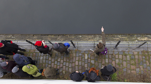 Seit 2012 ist die Akademie der Künste der Welt ein loses virtuelles Kollektiv von Kulturschaffenden. Hier tummeln sich bildende Künstler, Musiker, Tänzer, Autoren, Filmemachern und Kuratoren verschiedener Kontinente auf einer gemeinsamen Produktionsplattform. Schau‘n wir mal. Das Label „Urban War Stories“ läuft noch bis Mitte November. Dann ist Winter und kalt und Mareike Theile und Dominik Müller, beide Theaterwissenschaftler und in der freien Szene aktiv, möchten bei performativen Stadtführungen nicht mehr draußen arbeiten. Ihr Thema ist der Krieg, und Köln ist immer noch eine merklich vom Krieg geprägte Stadt, überstand mittelalterliche Schlachten, aber nicht den Zweiten Weltkrieg. (Beim U-Bahn-Bau sind sich die Historiker noch nicht sicher.) Kriegsflüchtlinge aus aller Welt suchen heute in Köln Zuflucht, und könnte es sein, dass sich ihre Geschichten mit denen der Altvorderen überschneiden? Diesen Fragen gehen die beiden nach (sonntags 15 Uhr ab Academyspace). Das Berliner Künstlerduo Birgit Auf der Lauer und Caspar Pauli arbeiten an der gleichen Problematik. Sie projizieren bei „Grenzfährservice IV“ die Praxis des Menschenschmuggels auf den Ebertplatz, einen zwar autogerechten, aber auch von einer Fußgängerunterführung durchschnittenen, bombenkraterähnlichen Ort. Dort laden sie ihr Publikum zu einer Stadtwanderung ein (Sa/So 16 Uhr), ergänzt durch eine Installation in der Projektgalerie Labor (bis 30.10., Ebertplatzpassage). Werden sie auch hier koloniale Verbindungswege finden?