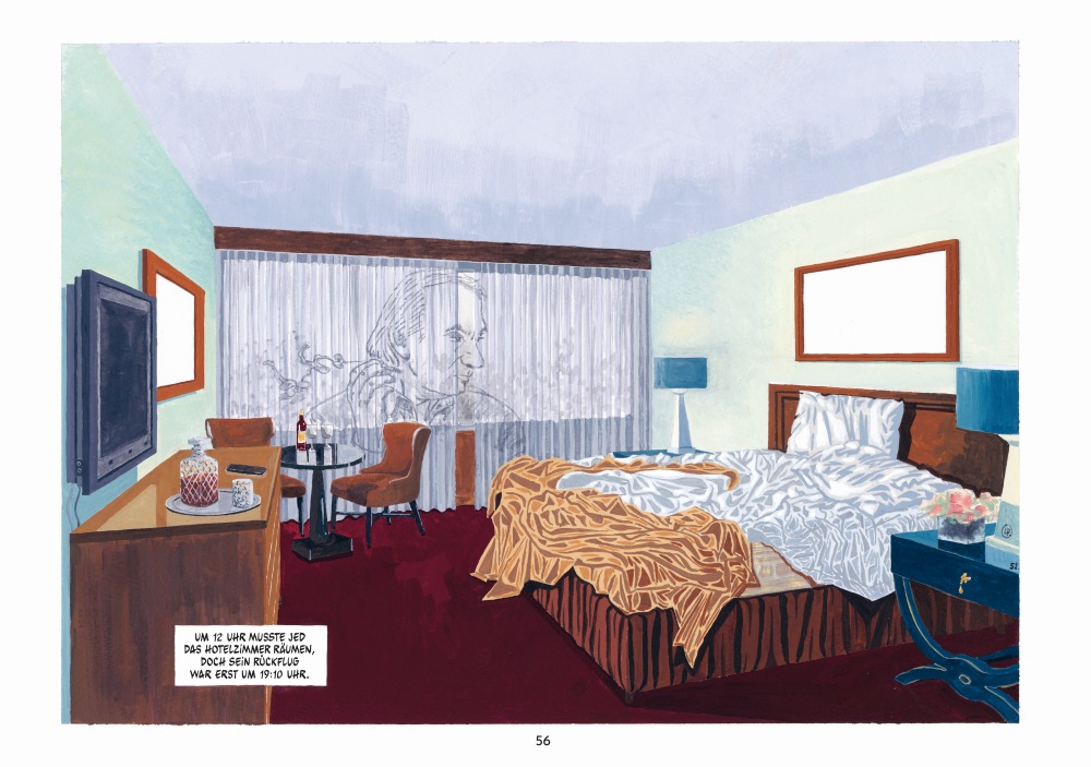 Der Architekt und Comic-Debütant Louis Paillard hat Michel Houllebecqs Romans „Karte und Gebiet“ aus dem Jahr 2010 als bemerkenswert dichte Graphic Novel adaptiert: Als der Maler Jed Martin an seinem neuen Gemälde „Damien Hirst und Jeff Koons teilen den Kunstmarkt unter sich auf“ zu verzweifeln droht, entfaltet sich ein biografisches Netz als Gesellschaftsroman, in dem auch Houllebecq als Romanfigur auftaucht und mit dessen Ermordung in einen Krimi mündet, der schließlich in die Zukunft verweist. Die irrwitzige Handlungsstruktur bündelt Paillard mit facetten- und zitatreichen Zeichenstilen in Farbe und Schwarzweiß zu einem beeindruckenden Panoptikum einer übersteuerten Gesellschaft (Dumont).