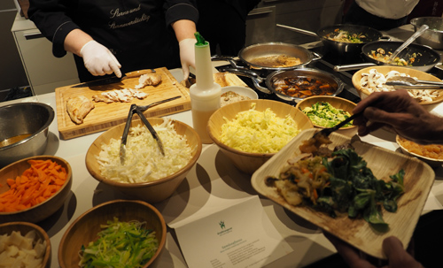 Vor den Augen der Gäste zubereitetes Essen aus der Region