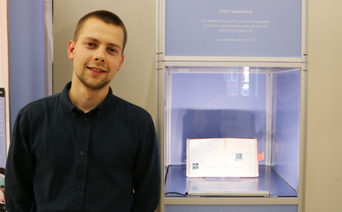 Jakob Eichhorn mit einem Faksimile von Annes Tagebuch, Foto: Katja Sindemann