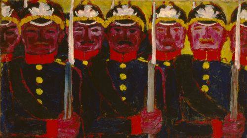 Emil Nolde, Soldaten, 1913, Öl auf grober Leinwand (Sackleinen), Nolde Stiftung Seebüll
