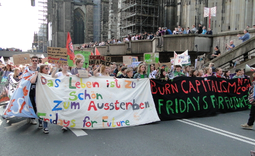 Drei Monate sind seit dem ersten globalen Klimastreik von „Fridays for Future“ (FFF) vergangen, bei dem rund um den Erdball in 90 Ländern insgesamt etwa 1,5 Millionen Schüler ihren Klassenräumen fernblieben, um für eine Kehrtwende in der Klimapolitik zu demonstrieren. In Köln etwa hatten sich 10.000 Schüler, Studenten und weitere Sympathisanten an der Demonstration durch die Innenstadt beteiligt. Am 24. Mai gab es erneut einen weltweiten Streiktag. In Köln sammelten sich die Demonstranten auf dem Roncalliplatz.