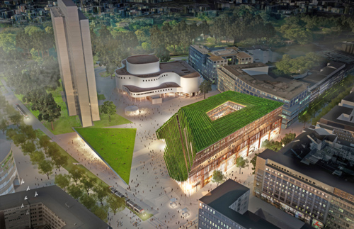 Weniger gut daran ist, dass der Vertrag offenbar Handlungsfreiheit auf einem anderen Gebiet einräumt. So haben Stadt und Investor nun alle Möglichkeiten, den Gustaf-Gründgens-Platz vor dem Theater zu verkleinern und umzugestalten. Die darunter liegende Tiefgarage wird sowieso abgerissen, doch es geht auch um die inzwischen niederlegte Begrenzungsmauer des Platzes. Obwohl unklar ist, inwieweit sie von Bernhard Pfau geplant wurde, steht sie unter Denkmalschutz – musste aber dem herrischen Neubau-Koloss von Architekt Christoph Ingenhoven inzwischen weichen. Und auch das Kassenhaus des Schauspielhauses soll umgestaltet und die Fassade geöffnet werden. Damit ist endgültig klar, dass das komplex auf einander bezogene Ensemble von Schauspielhaus und Thyssen-Hochhaus zerstört wird. Zu dieser Antithese aus organisch- geschwungener Horizontale des Theaters und emporgereckter Vertikale des Drei-Scheiben-Hauses gehörte unabdingbar auch die Weite des Gustaf-Gründgens-Platzes samt Einfassungsmauer dazu. Nur so gewann die Dialektik der beiden Bauten ihre städtebauliche Signifikanz. Schon die Planung des Kö-Bogen-II-Projekts hat diese Kontur zerstört. Mit dem Kauf der Nutzungsrechte haben Stadt und Investor endgültig freie Hand.