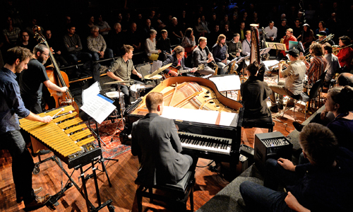 Sechzehn Musiker, das Jazzorchester Loom, bestehend aus fünf Holz- und fünf Blechbläsern mitsamt Rhythmusgruppe, haben auf dem ovalen Parkett platzgenommen. Für Niels Klein, Saxophonist, Klarinettist und Kopf des Ensembles, ist die Besetzung des jazzkompositorischen Projektes merklich eine Herzensangelegenheit. Aufschauend zu der großen Concert Jazz Band Gerry Mulligans, die zu Beginn der sechziger Jahre die Avantgarde des orchestralen Cool Jazz bildete, komponierte Klein neun Stücke.