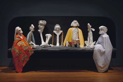Es mag verführerisch gewesen sein, neben den teils neu geschaffenen Videos, Objekten, Malereien und Installationen auch ältere Werke aus der Sammlung des eigenen Hauses auszustellen, von Jan Dibbets oder Richard Long oder Franz West etwa: Plötzlich franst die Ausstellung aus, verliert an intentionaler Genauigkeit. Aber das rückt sich wieder zurecht in Beiträgen wie der Videoinstallation von Christopher Kulendran Thomas, die vom Raub des Waldes der Tamilen in Sri Lanka handelt und den Bogen hin zu Celebrities und KI spannt, oder den Skulpturen, die Havîn Al-Sîndy von Hand mit Lehm und der Erinnerung an ihre Heimat Kurdistan geschaffen hat. Ebenso eindrucksvoll sind die Installationen von Grace Ndiritu, die ein „Pflanzentheater für Pflanzenfreund:innen“ zeigt, und des Cercle d’Art des Travailleurs de Plantation Congolaise, der mit dem Erlös seiner Skulpturen aus Kakao und Lehm sein einstiges Land zurückkauft. Großartig ist zudem, dass sich die Ausstellung großzügig über das gesamte Gebäude verteilt und sich im Außenraum fortsetzt – dort im direkten Dialog mit der Natur.