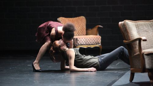 Starke Bilder offeriert auch die Ben J. Riepe Kompanie in ihrer Produktion „Hundstage“ in Köln. Wo Aggression, Begehren, Schmerz und Eifersucht brodeln, da gibt es auch viel Nähe, ein heißes Thema, das auf der Bühne mit reichlich Wasser heruntergekühlt wird.