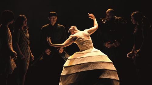 Die Choreographie ist perfekt auf die Bühnen des Tanzhauses NRW in Düsseldorf und des Depots des Kölner Schauspiels zugeschnitten worden. Khan zentriert das Geschehen in einem Quadrat, in dem sich die Figuren wie auf einem Schachbrett verschieben lassen. Hier trifft die barbusige Königin im Reifrock auf das gehörnte Tier. Die psychologische Dimension, die auch in Strawinskys „Frühlingsopfer“ herausgeschält werden kann, interessiert Khan weniger als das Spiel mit den Symbolen und Allegorien, die einen Horizont zur mythischen Dimension des Stoffs eröffnen. Meisterhaft spielt er auf den Bühnen der beiden Rheinstädte mit der Wirkung der Raumtiefe, indem er seine Tänzer in den Vordergrund rückt und damit Nähe zu ihren Körpern herstellt. Dafür nutzt er die Tiefe für Projektionen, so dass die kleinen Menschen große Schatten werfen können und sich ein mythisches Prospekt entfalten kann. Fast schon selbstverständlich, dass sein elfköpfiges Ensemble mit brillanter Technik punktet. Die Gruppenchoreographien funktionieren mit Leichtigkeit und die Synchronität zwischen Bewegung und Musik beeindruckt jedes Publikum unweigerlich. So bietet Akram Khan zum 100. Geburtstag des „Frühlingsopfers“ eine kluge, bildgewaltige Version, die uns vor Augen führt, welches Potenzial in diesem Stoff noch immer enthalten ist.