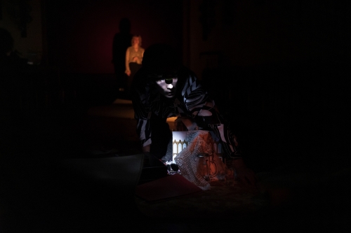 Im zweiten Teil des Stücks geht es um den Einsturz des Stadtarchivs mit zwei Toten, eine Katastrophe für das Gedächtnis Kölns und des ganzen Landes. Die klare Gerichtsstruktur der Inszenierung wird hier leider aufgegeben. Da wird der ganze Vorgang mit einer großen Trittleiter als Symbol theatralisch ausführlich erzählt und gespielt, eine Augenzeugin schildert hochdramatisch ihre eigene Geschichte, klettert dazu auf einer Leiter herum. Futur3, wie bei der Premierenfeier im persönlichen Gespräch zu erfahren war, sind der Meinung, dass die Kölner den Einsturz schon vergessen hätten. Das stimmt nicht. Die Presse ist ständig voll davon, sei es die juristische Aufarbeitung, Gedenktage, der Status der Wiederherstellung der Dokumente oder auch der fast fertige Neubau des Archivs. Es hat mehrere Ausstellungen dazu gegeben, auch von Rolf Escher; der sehr bekannte Künstler hat sich lange in Köln aufgehalten und den Einsturz und die verschütteten Objekte per Zeichnung festgehalten und zu Gunsten des Archivs verkauft. Und vor allem: Das war die Folge kriminellen Verhaltens einzelner Bauleute und nicht Schuld der Stadt. Ebenso tragen Bemerkungen, dass die „gesamte Hohestraße und Schildergasse“ der katholischen Kirche gehören würden, der es nicht um Geld, sondern nur um Macht gehe, nicht gerade zur Versachlichung bei.