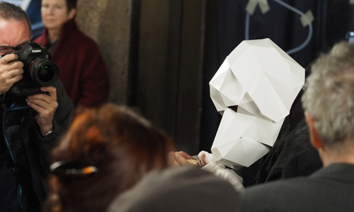 Die neue künstlerische Leiterin Madhusree Dutta, Künstlerin aus Mumbai, sprach von der Veranstaltung als Beginn einer aktiven Teilnahme der Akademie am laufenden Kampf gegen die Gentrifizierung, einer „immer dringenderen Aufgabe in der heutigen Welt“. Die Akademie ginge zudem in eine neue zweijährige Phase, in der „Dialoge zwischen lokalen Erfahrungen und internationalen Diskursen und Praktiken“ gefördert und – wie an diesem Abend – „neue Allianzen zwischen öffentlichen Institutionen und der freien Szene“ hergestellt werden sollen. Beschäftigen wolle man sich speziell mit dem Archivieren, mit gefährdeten Kulturorten, Weiterverarbeitung und Kopie sowie Hybridität im Zeichen des heutigen kulturellen und sonstigen Austauschs. Sie bat für die Arbeit der Akademie um dauerhaftes Feedback für „mehr Klarheit und kreativere Interaktionen – mit der Stadt, mit den Bürgern und mit den Nicht-Bürgern“. Sie wolle die Akademie etwas näher „an die Straße“ bringen. Ihrer teilweise akademisch gefassten Rede war allerdings schon akustisch nicht leicht zu folgen, da die Gespräche rundherum Lärm verursachten. Es gab wenig Platz für gute Sicht, und so war es kein Wunder, dass manche sich etwas ausklinkten. Es dürften zwischenzeitlich über 150 Menschen dagewesen sein.