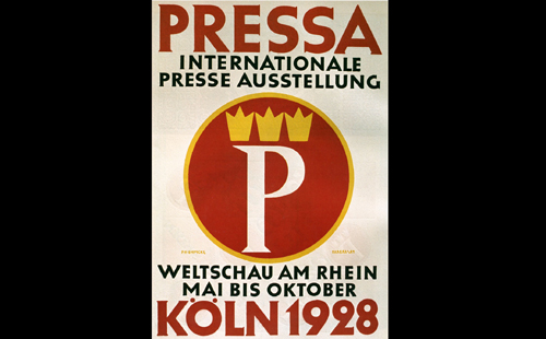 Plakat zur Internationalen Presse-Ausstellung PRESSA, entworfen von Fritz Helmuth Ehmcke, gedruckt bei Wilhelm Eisfeller in Köln, 1928, Kölnisches Stadtmuseum
