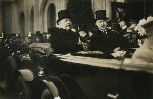 Adenauer und Reichspräsident von Hindenburg vor den Messehallen, 21. März 1926