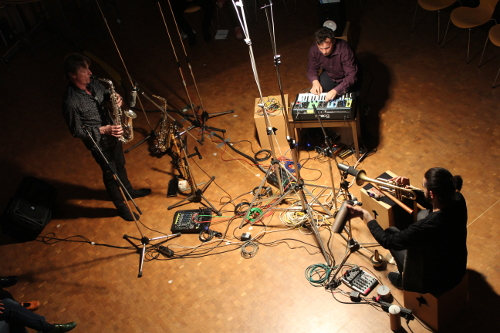 Ausgehend von einer Telemann-Suite brachen die drei Improvisationsvirtuosen in weite musikalische Gefilde auf. Die Musiker spielten raffiniert und experimentell mit dem Raum, nutzten elektronische Effekte auf Trompete und Saxophon, aber bedienten sich auch der akustischen Charakteristika des Raums, nicht zuletzt durch die Verwendung der frisch gebauten Orgel. Philip Zoubek wechselte fließend von Synthesizer auf Orgel, während auch Giw und Niesemann an verschiedenen Stellen ihre Spielposition änderten und so eine Dynamik in das Konzerterlebnis brachten. Trompete und Saxophon standen dem gewaltigen mechanischen Blasinstrument dabei in nichts nach. Alle drei erstrahlten kraftvoll den Raum, waren mal Verfolger, mal Verfolgte und verschmolzen zu einem einzelnen Organismus.