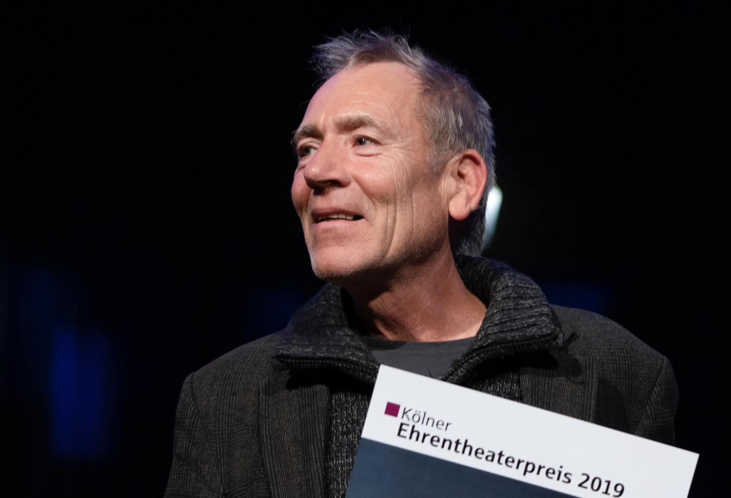 Dass Fotograf Werner Meyer die Theaterfotografie einstellen will – er hat sich in Husum in Schleswig-Holstein eine alte Villa gekauft – wurde als ein Grund dafür angeführt, warum er nun als ziemlich einfache Juryentscheidung den Ehrentheaterpreis erhalte. Ein Jurymitglied sprach von der Qualität seiner Fotos und seiner hohen Professionalität. Meyer erinnerte sich, wie er 2003 im Theater der Keller als Grafiker gearbeitet habe und aus einer Not heraus sagte: „Ich könnte ja mal ein Bild machen.“ So habe es begonnen. Er habe jedes Stück gelesen, dass er begleitet hat, hieß es von Sabine Hahn ais der Jury, und sei bei der Arbeit „schwerelos“ gewesen. Meyer ist bis zuletzt noch unter dem Banner „Meyer Originals“ der offizielle Fotograf eines guten Teils der Kölner Theater- und vieler Tanzstücke der freien Szene und sein Archiv somit auch ein kulturelles Gedächtnis. Sichtlich gerührt, konnte er sich wie Sibel Polat und Fee Heitland an diesem Abend im Kreise der Szene über eine große Verbundenheit und Anerkennung freuen.