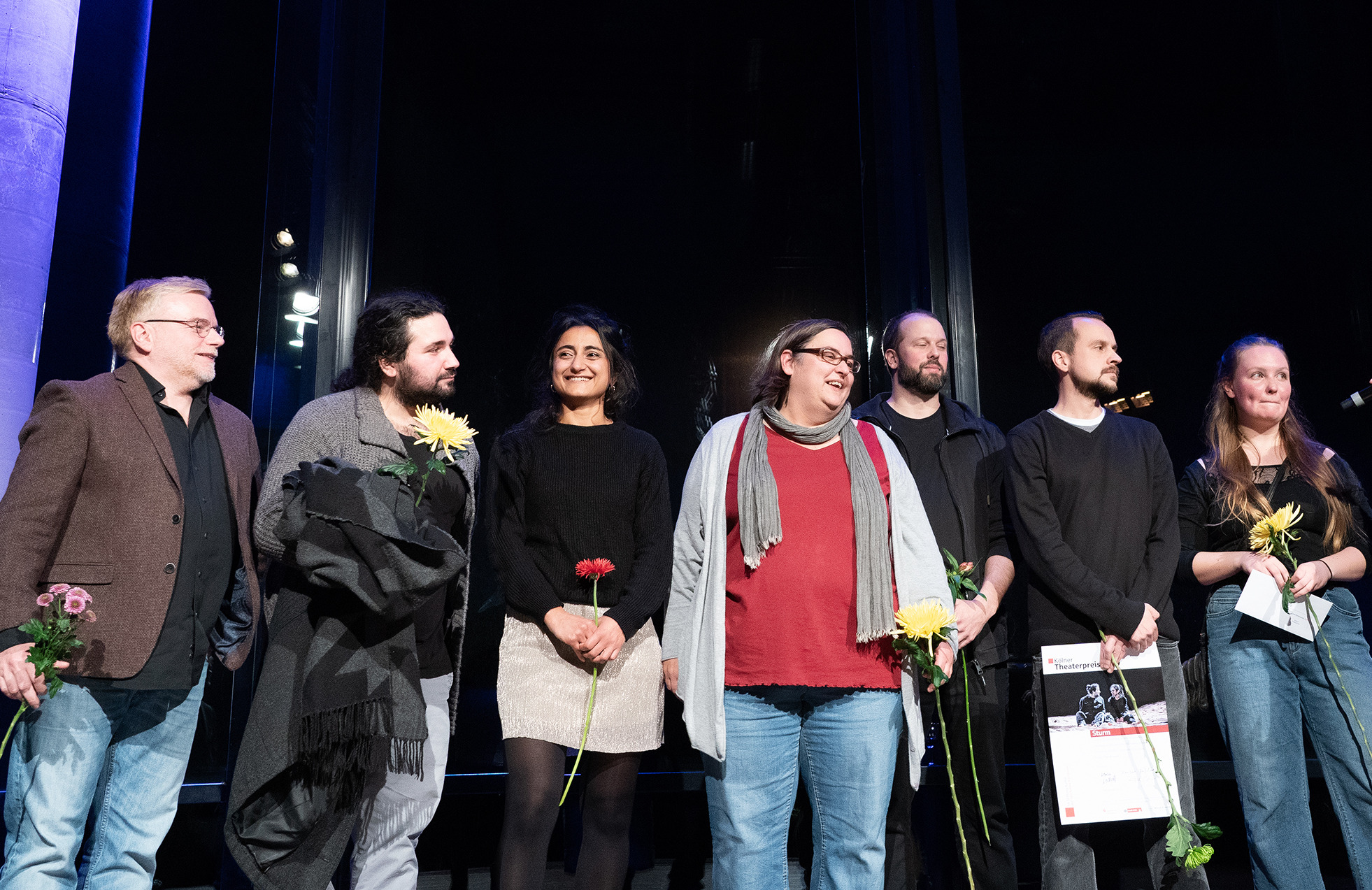 Den Theaterpreis, als Hauptpreis dotiert mit 10.000 Euro, erhielt die von Tim Mrosek inszenierte Shakespeare-Adaption „Sturm“ mit Asim Odobašić und wiederum Sibel Polat. Jury-Mitglied Ulrike Westhoff hob hervor, dass das „lässige, geniale und wahnsinnig zeitgemäße“ Stück „auf geniale Weise auf 60 Minuten eingedampft“ worden sei, und lobte, wie die beiden Schauspieler das Innenleben von über 15 Figuren als ein „Kaleidoskop von Machtmissbrauch“ erlebbar machten. „Sturm“ wird im März wieder an der Studiobühne zu sehen sein.