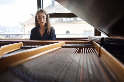 Bislang sind das Klavier oder der Synthesizer und meine Stimme meine Hauptinstrumente. Ich loope außerdem in manchen Stücken meine Stimme oder verändere sie mit verschiedenen Effekten. Ich habe aber auch vor kurzem angefangen, Gitarre zu lernen. Das ist aber definitiv noch in den Kinderschuhen.
