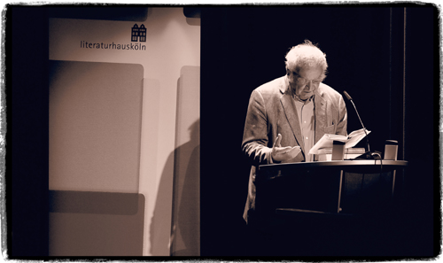 So ein verbindendes Erlebnis wirkt auch am 27. März im Kölner Comedia Theater noch nach, wo Scheck und Walser in einer Veranstaltung des Literaturhauses mit Unterstützung der Deutschen Bank drei Tage nach dem eigentlichen Geburtstag an die Fernsehgespräche anknüpften. Aber ein eingespieltes Team sind die zwei an diesem Abend im ausverkauften Roten Saal zum Glück nicht – dafür sorgen beide bewusst oder unbewusst von selbst. Sie haben sich trotz all der Zusammenarbeit die Distanz zum Frage-und-Antwort-Spiel erhalten, und es gibt kein Gespräch mit Walser ohne ein plötzlich ratloses Stocken und Einwände gegen eine Wortwahl (niemals: „Sex“). Zwar schienen am Anfang und am Ende ein paar der nie unüberlegten Fragen etwas nebensächlich für so ein bedeutendes Jubiläum: Scheck weiß alles Wichtige schon und sucht als Fernsehmoderator auch immer mal das Amüsante und Leichte. Doch gab es mehr als genug Interessantes zum Mitnehmen und eine mit 45 Minuten und 14 Kapiteln eigentlich zu lange, aber vor allem starke Lesung aus dem neuen Roman „Statt etwas oder Der letzte Rank“, mit dessen Erzähler Walser eins wurde und dessen hohe Erfordernisse an den Ausdruck ihn am Pult schließlich auch etwas ins Schwitzen brachten.