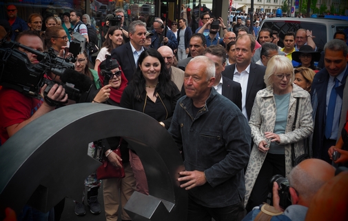 Dem Friedensmarsch durch abgesperrte Hauptverkehrsstraßen voran rollte unter anderem mithilfe von Elfi Scho-Antwerpes und Dr. Al-Mousllie der große und reichlich schwere Stahlring „Engel der Kulturen“, der in den Boden eingelassen werden kann. Das in vielen Städten durchgeführte Kunstprojekt der Burscheider Künstler Carmen Dietrich und Gregor Merten solle, so Merten, dazu beitragen, „das Zusammenleben der Kulturen friedlich und versöhnlich zu gestalten“. Enthalten sind Davidstern, Kreuz und Halbmond.