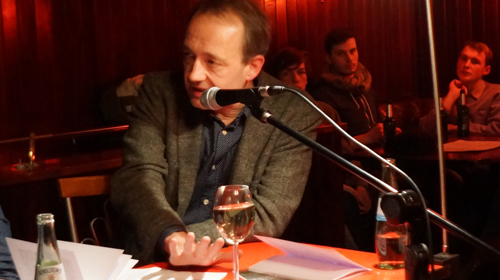 Im King Georg, einer schummrigen Bar am Ebertplatz, wird dieser Frage auf den Grund gegangen. Zur Lesung und Diskussion lädt der Autor in Kooperation mit der Akademie der Künste der Welt ein. Das Publikum bietet an diesem Abend eine interessante Mischung aus typischem Kneipenpublikum, jungen Muslimen und Studenten, einigen älteren Türken und Rentnern.