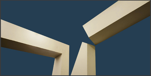 Vor drei Jahren begann schließlich die Arbeit an der aktuellen Werkreihe „architectures“. Das Grundelement eines jeden Werkes ist auch hier das Foto eines Innenraums. Durch die Weiterentwicklung der Farbfläche hin zu einer Maske, die über das Foto gelegt wird und  große Teile des Raumes abdeckt, werden einzelne Elemente des Raumes extrahiert. So entstehen eigenständige architektonische Formen, die wie Skulpturen wirken.