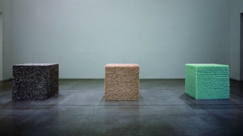 Nicht nur eine NRW-, sondern auch eine Deutschland-Premiere: Tara Donovan stellt ihre filigranen, halbtransparenten, geschwungen volumetrischen Objekte derzeit im Bahnhof Rolandseck aus. Geboren 1969, gehört die New Yorkerin zu einer Generation, die mit organischen Verläufen Zustände des Sinnlichen erzeugt und eine genaue Recherche zu Phänomenen des Alltags unternimmt. Sie schichtet Materialien unserer industriellen Realität und verwandelt sie in hinreißend schöne Formulierungen. Ihre Objekte an der Wand und im Raum erinnern an Kristalle und Seifenblasen, sie könnten aber auch biomorphe Kleinststrukturen sein, gesehen unterm Mikroskop, oder Gewächse auf dem Meeresgrund. Sie sind milchig hell und strahlen ein sanftes Licht aus. Die Ausstellung im Bahnhof Rolandseck wird von drei Kuben beschlossen, in denen jeweils eine minimale Form in riesiger Anzahl verklebt und gepresst ist und nun einen pulsierenden Organismus initiiert. Dabei trägt das Nebeneinander der Kuben etwas vergleichend Analytisches, und doch bleibt ein Geheimnis, was hier in eine nüchtern strenge Form gefasst ist.