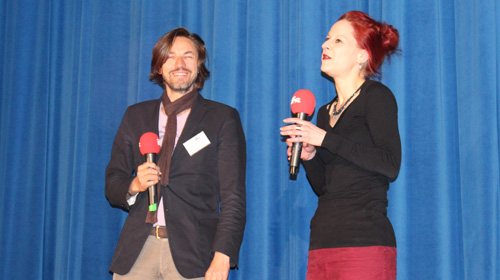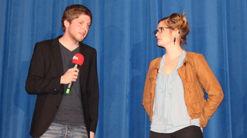 Vieles davon konnte man tatsächlich in den Abschlusskurzfilmen entdecken, die anschließend in vier Blöcken präsentiert wurden. Dazwischen nahm man sich in einer Drehbuchpräsentation zusätzlich noch acht bislang unverfilmter Ideen an und stellte diese dem Publikum vor. Unsicherheit dürfte von den durch Simone Stewens angeführten Filmhochschulwerten vielleicht derjenige sein, der sich bei den Absolventen am wenigsten bemerkbar machte. Wie alte Profis stellten sie sich im Anschluss an die Vorführung ihrer Filme den Fragen der ifs-Professoren, die die einzelnen Filmblöcke moderierten. Im ersten Block waren das Prof. Hans Steinbichler (Regisseur von „Das Blaue vom Himmel“) und seine Kollegin Prof. Dr. Lisa Gotto (Dozentin für Filmgeschichte und Filmanalyse). Ihr erster Gesprächspartner auf der Bühne war Levin Hübner, dessen Abschlussfilm „Alter Egon“, mit Tilo Prückner in der Hauptrolle prominent besetzt, seine Uraufführung bereits auf dem Max-Ophüls-Filmfestival in Saarbrücken erlebt hatte, wo er sogar den Publikumspreis gewinnen konnte.