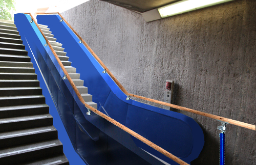 Die Skulptur „Perspektive“ von Vera Drebusch und Evamaria Schaller hingegen wird nicht begehbar sein. Die Fläche der Rolltreppe wird in verschiedenen Winkeln verspiegelt. „Wer an der Skulptur Vandalismus begeht, wird sich dabei selbst ansehen müssen“, so Drebusch. Außerdem spiegeln die Flächen die Architektur des Ebertplatzes in den Untergrund. „Wenn die Skulptur steht, sollen hier auch Workshops zu Reflexion und Körper stattfinden.“ Auch die Skulptur „Ohne Titel“ ist kein Klettergerüst, dafür aber ein optisches Spektakel. Mit LED-Streifen versehen, wird die ehemalige Rolltreppe in bunten Farben leuchten. „In Anlehnung an den Ruf nach Kontrolle und Überwachung steht unsere Skulptur als Scanner“, so Künstler Claus Daniel Hermann. „Wer davor steht wird von der Treppe ‚gescannt‘, die leuchtet und Sound macht.“