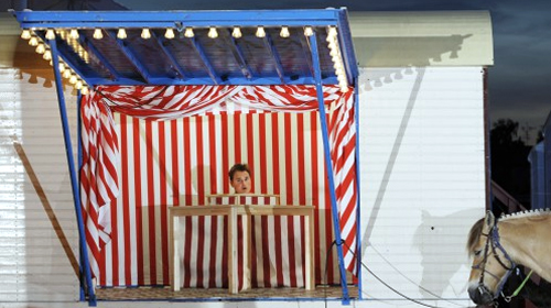 Ein Pferd galoppiert über eine Brache in Mülheim. Scheinwerfer beleuchten merkwürdige Bauten und ein Theaterzelt. René Pollesch ist Gast bei den Impulsen 2011. Sein Hauptdarsteller, der unglaubliche Fabian Hinrichs, ist auf der stoppeligen Wiese unterwegs durch die Menschheitsgeschichte. Sein Thema: Die 100 wichtigsten Erfindungen der Menschheit. Er zählt sie auf vom Faustkeil - ist schließlich schon einundeinhalb Millionen Jahre her - bis zum Nanometer im Jahr 2000. Dazwischen allerlei skurriles und wichtiges, Kondome fehlen natürlich auch nicht. Kaum zu glauben, Pollesch ist beim bedeutendsten biennalen Festival des freien Theaters im deutschsprachigen Raum nur das Rahmenprogramm.