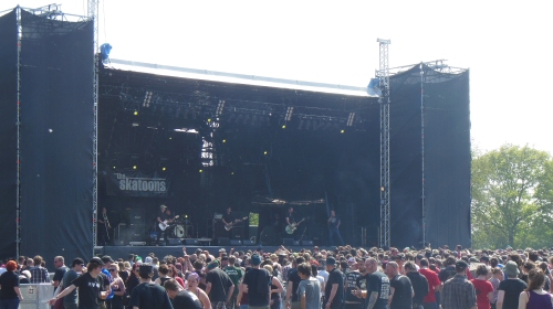 Danach liefern The Skatoons solide ab. Der Raum vor der Bühne wird voller, viele Fans haben die Hamburger im Gepäck, so dass kaum auffällt, dass Sonic Boom Six erst gar nicht auftauchen. Der anschließende Deutschpunk von Zaunpfahl ist tanzbar, die ironischen Texte (zum Beispiel „Tote tanzen keinen Pogo“) lassen sich aber auch bequem im Gras sitzend genießen. Das kann man von dem Hardcore-Punk der Boskops nicht unbedingt behaupten. Optisch und akustisch locken dann erst wieder Mad Sin vor die Bühne. Köfte hüpft wie ein feister Flummi durch die Gegend, am Sound der Alt-Psychobillys gefällt mir stets nur der Kontrabass. Irgendjemand schreit da bereits impertinent nach Dritte Wahl. Wie unhöflich denke ich noch, bevor ich merke, dass ich selbst es bin.