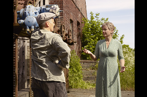Drei Lebensläufe werden skizziert. Mit simplen doch effektiven Verkleidungen, die auf allzu große Make-Up-Spielereien verzichten und sich in der Regel auf Körpersprache und Garderobe reduzieren, war es dabei nicht getan, und so vertiefte sich Schlamann im Rahmen ihrer Vorbereitung in die Ausarbeitung mehrerer detailliert ausgefallener Lebensläufe, die stets etwas mit Leben und Werdegang der Künstlerin selbst zu tun haben. Ganz gleich, ob sie nun in die Rolle des Landwirts Georg, des zugeknöpft auftretenden Beamten Walter oder des in großstädtischer Anonymität (und auch Einsamkeit) lebenden Ingenieurs Bernd schlüpft, gibt sie doch immer etwas von sich selbst preis und liefert – je spezifischer ihre Beschreibungen der Brüder in spe dabei werden – ein immer präziseres Porträt ihrer selbst ab. „Die drei Biografien, in die ich hier schlüpfe, haben alle etwas mit mir zu tun“, sagt Schlamman. „Ich selbst bin beruflich Ingenieurin, unser Vater war Beamter, und die Arbeit auf dem Bauernhof, das war für mich in der ganzen Erdverbundenheit immer auch eine Sehnsucht. Der Hof, wo Georg, der Bauer, arbeitet, ist wie auch die Heimat von Walter, dem Beamten, in meiner westfälischen Heimat zu finden, mit der ich viel verbinde.“ So sind neben den Fotos aus den Leben ihrer „Brüder“ immer wieder Schnappschüsse Westfalens eingestreut, die nie ins Touristisch-Lokalpatriotische gehen, sondern stets an melancholische Seelenlandschaften gemahnen. Ob es wirklich ein Grund zum Jubel ist, dass Walter und Georg es nie von hier weggeschafft haben, bleibt offen.