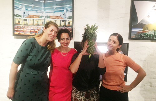 Das Organisationsteam bei der Vernissage: Margit Miebach (artrmx), Janine Koppelmann (Kuratorin), Irene Tonoian (artrmx), Teona Gogichaishvili (Co-Organisatorin)