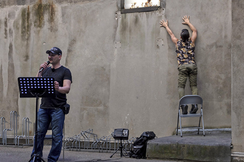 „Spüren Sie den Druck in der Brust? Das pochende Herz? Die Angst zu ersticken? Sie brauchen jetzt den Atem wie der Süchtige den Stoff“, erklärt Osman, der einen eindringlichen Monolog im Innenhof des Gesundheitsamtes hält, in welchem der Roadtrip startet. 12 Jahre verbrachte der 39-Jährige, der ironischerweise mal mit einer Polizistin zusammen war, hinter Gittern. „Während sie tagsüber Junkies von der Platte schubste, sah sie mir nachts dabei zu, wie ich konsumierte“, erzählt Osman, während Tänzer Hayato eine ausdauernde Performance hinlegt. Und das obwohl er eine Familie und einen Beruf habe.
